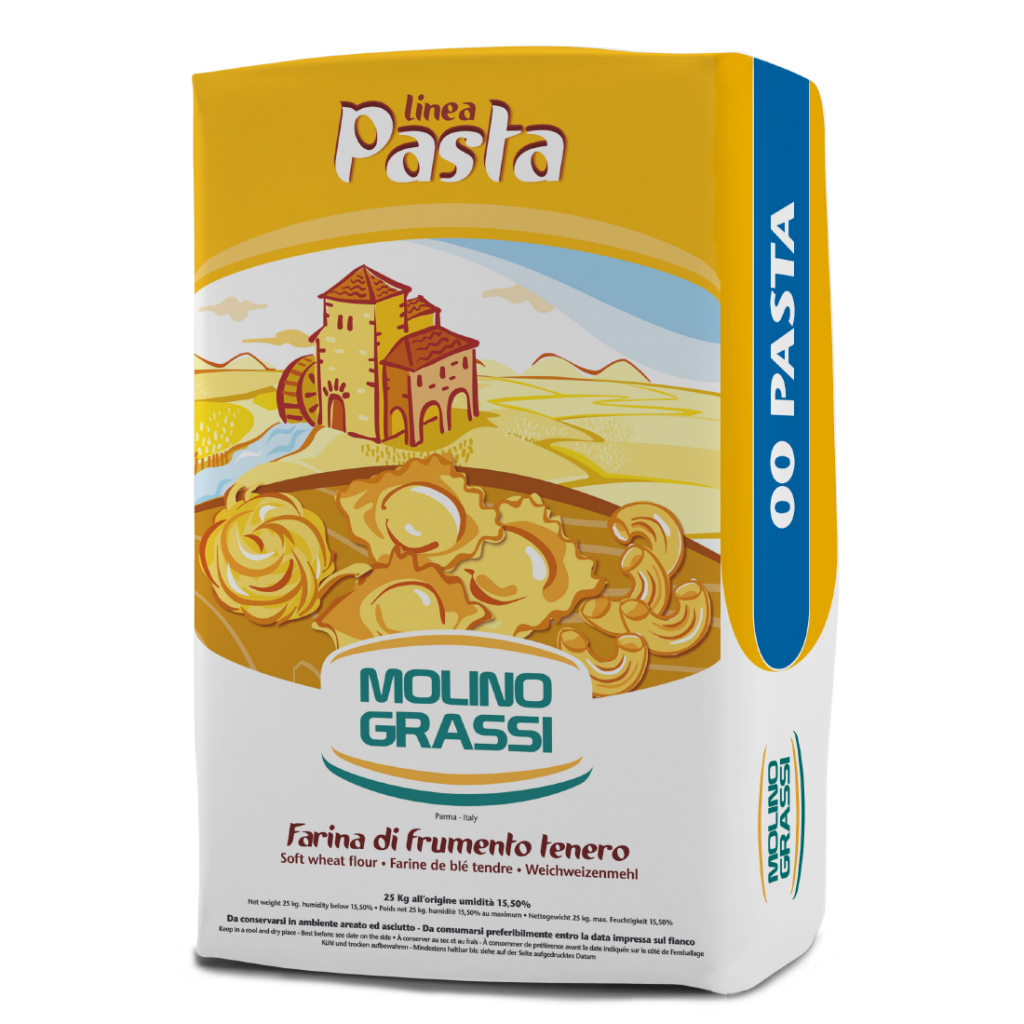 Борошно Паста 00 Molino Grassi отримане шляхом помелу та просіювання м’якої пшениці, очищеної від сторонніх речовин та домішок.
